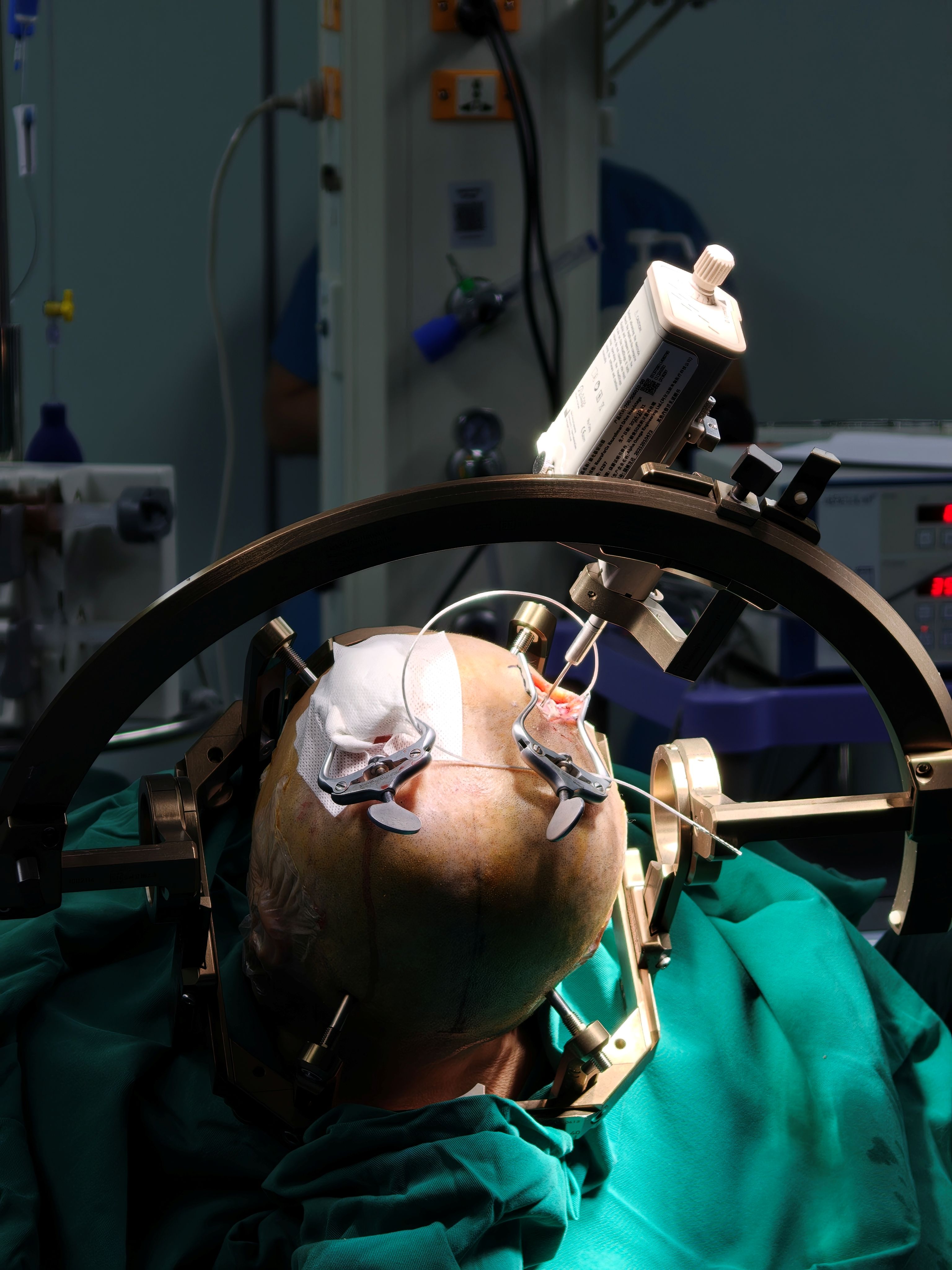 手术过程中,李建宇教授团队凭借丰富的经验和精湛的技术,首先利用高分辨率磁共振成像(MRI)和计算机断层扫描(CT)进行术前精准规划,确定最佳植入路径和靶点位置。随后,在立体定向系统的引导下,通过微电极记录技术进一步确认靶点位置,确保电极植入的准确性。最终,成功将四通道方向性电极植入患者脑内预定靶点,并完成脉冲发生器的植入与连接。术后,患者恢复良好,左侧肢体运动迟缓、发僵等症状得到显著改善,且未出现明显的不良反应。